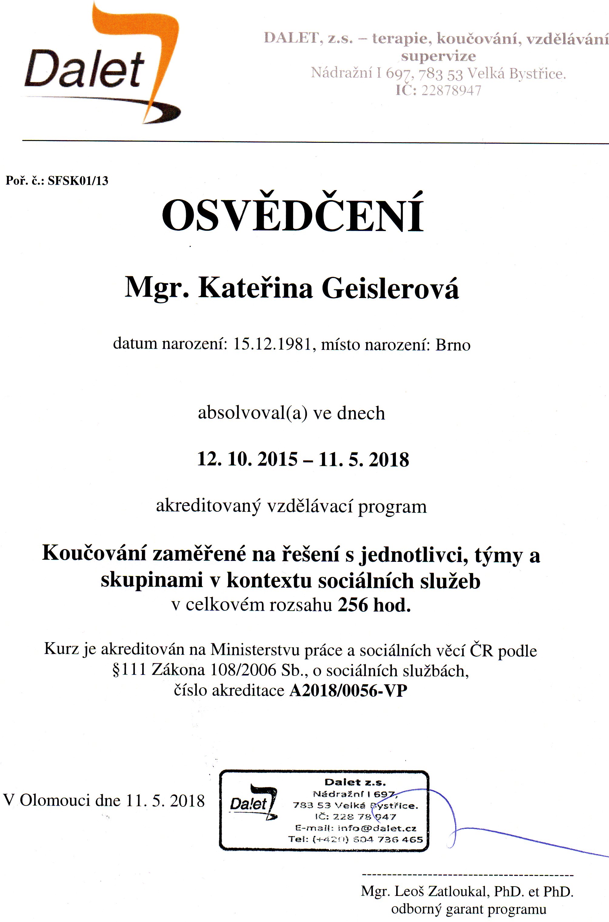 Dalšími vzdělávacími kurzy. (více v životopise)