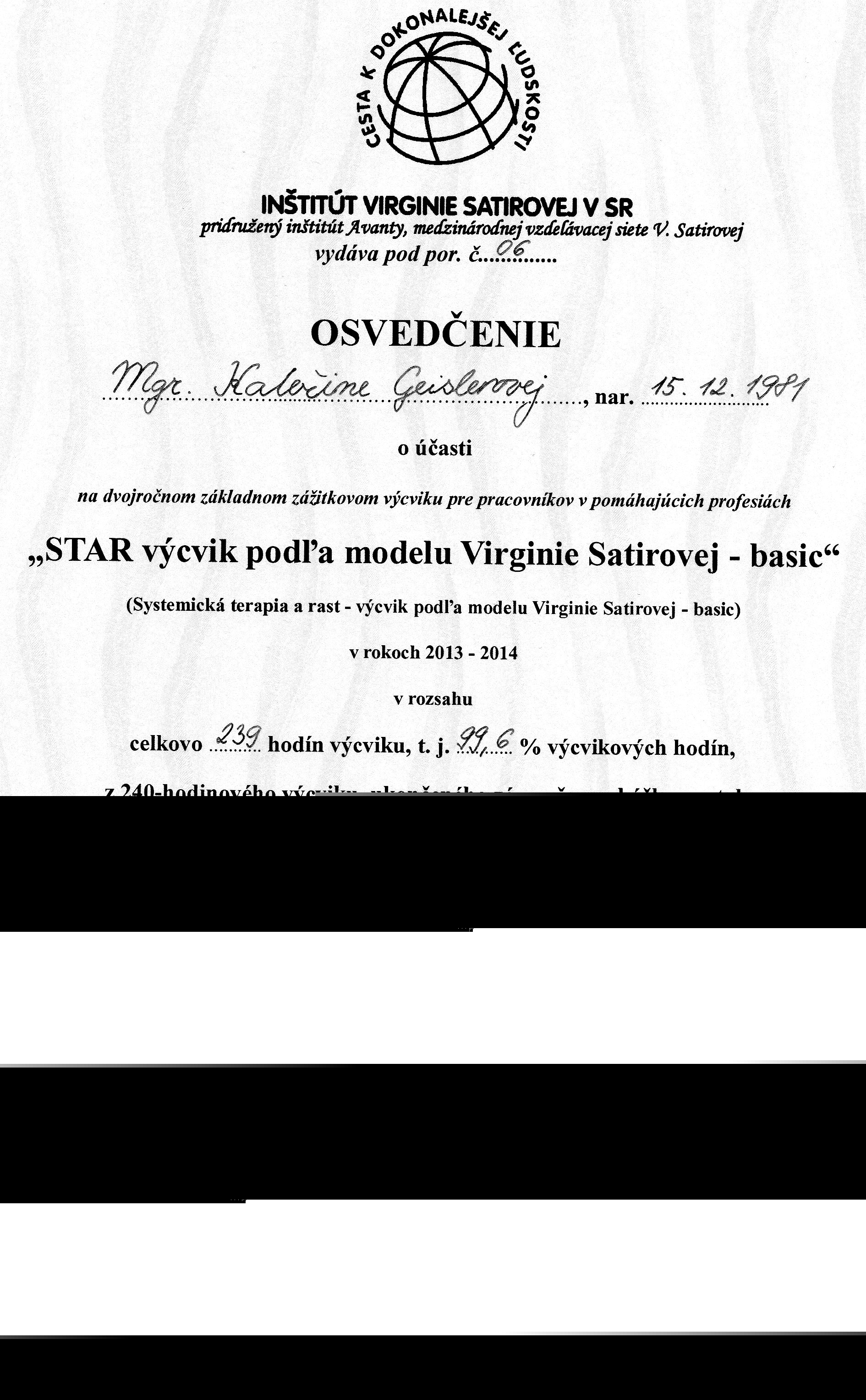 - Systemická terapie a růst – výcvik podle modelu Virginie Satirové